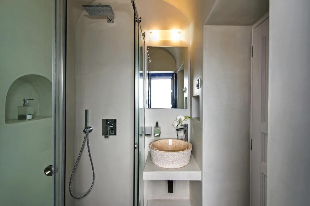 At Villa Domus Solis, the priority of privacy and aesthetics is visible everywhere you look. Enjoy a beautiful shower outer space designed with views of Thirasia, without being seen by anyone ... Sunbathing in complete privacy on the chaises longues on the veranda crowning the whole experience with sunset, when the Sun immerses into the sea creating a Phantasmagoria of color.